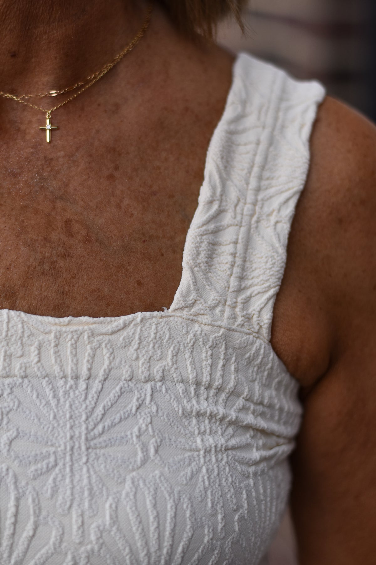 Soft floral lace texture with a square neckline