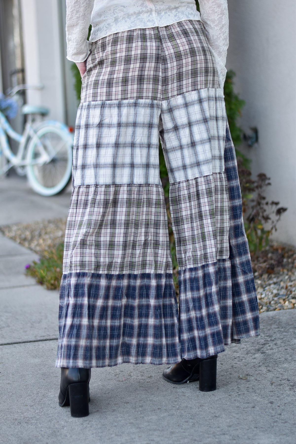 Relaxed patchwork pants with mixed plaid panels
