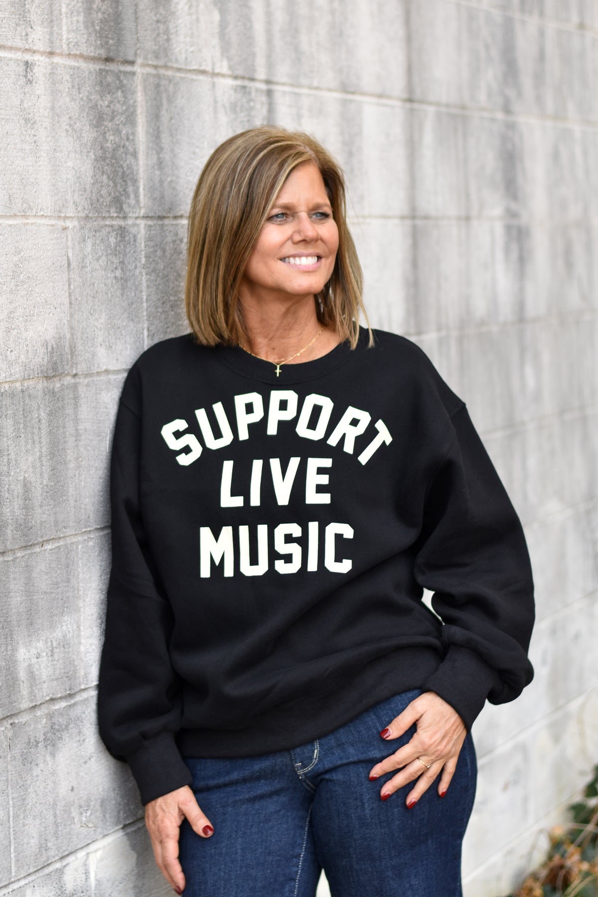 Cozy, classic, and made for music lovers—our Support Live Music Sweatshirt brings relaxed style and soft fleece comfort to your everyday lineup.