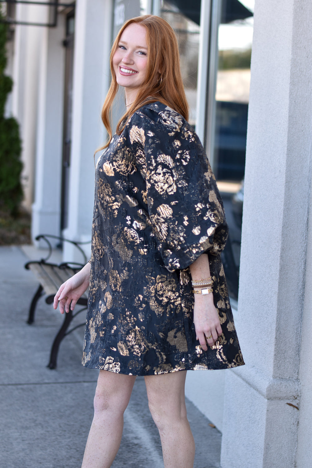 Golden Bloom Jacquard Shift Dress