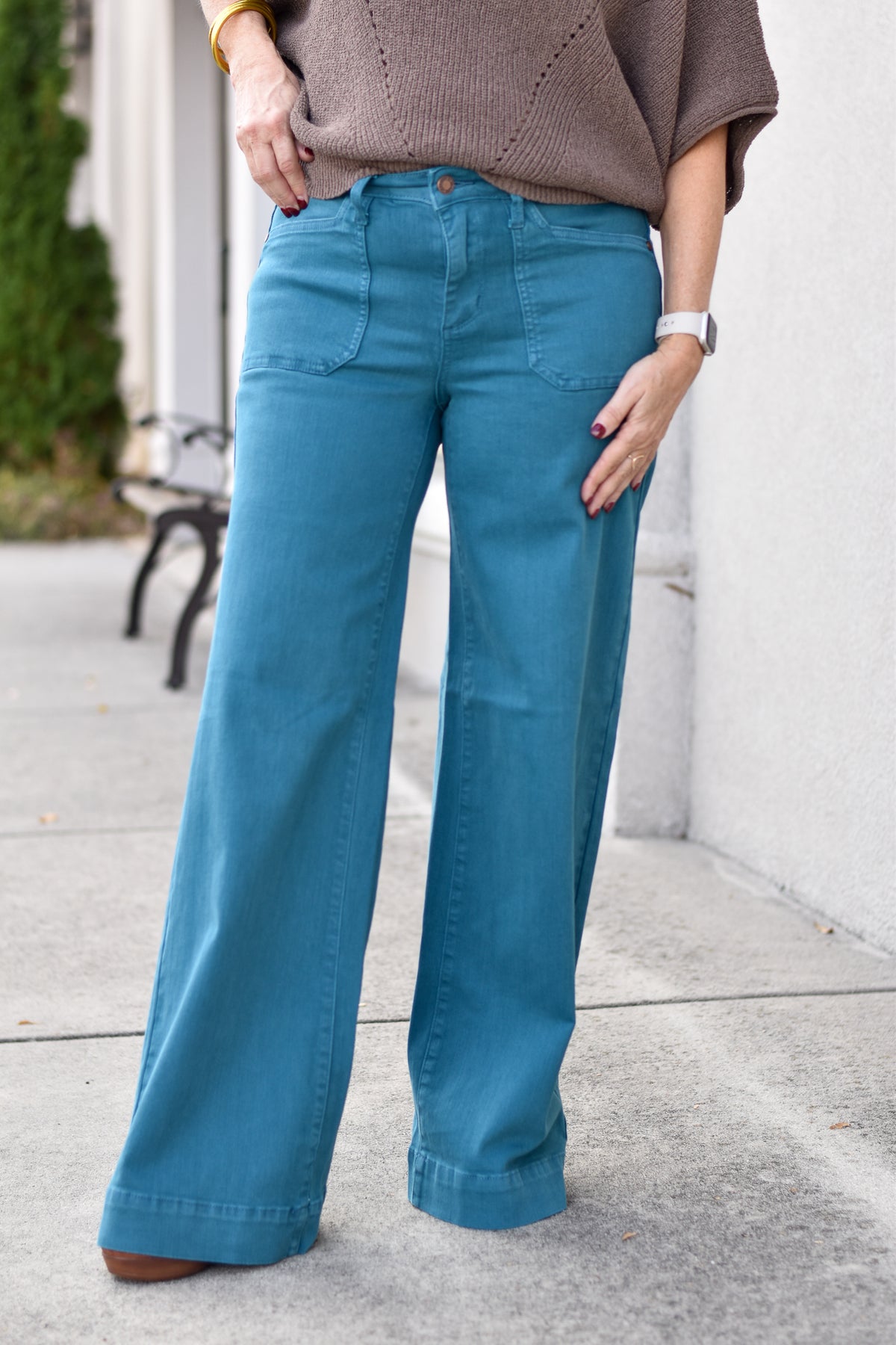 Meet your new statement denim. The Judy Blue Teal Utility Wide Jeans deliver all the stretch and comfort Judy Blue is famous for—now in a standout teal wash with a chic wide-leg fit. Soft, flattering, and perfect for elevating your everyday style.