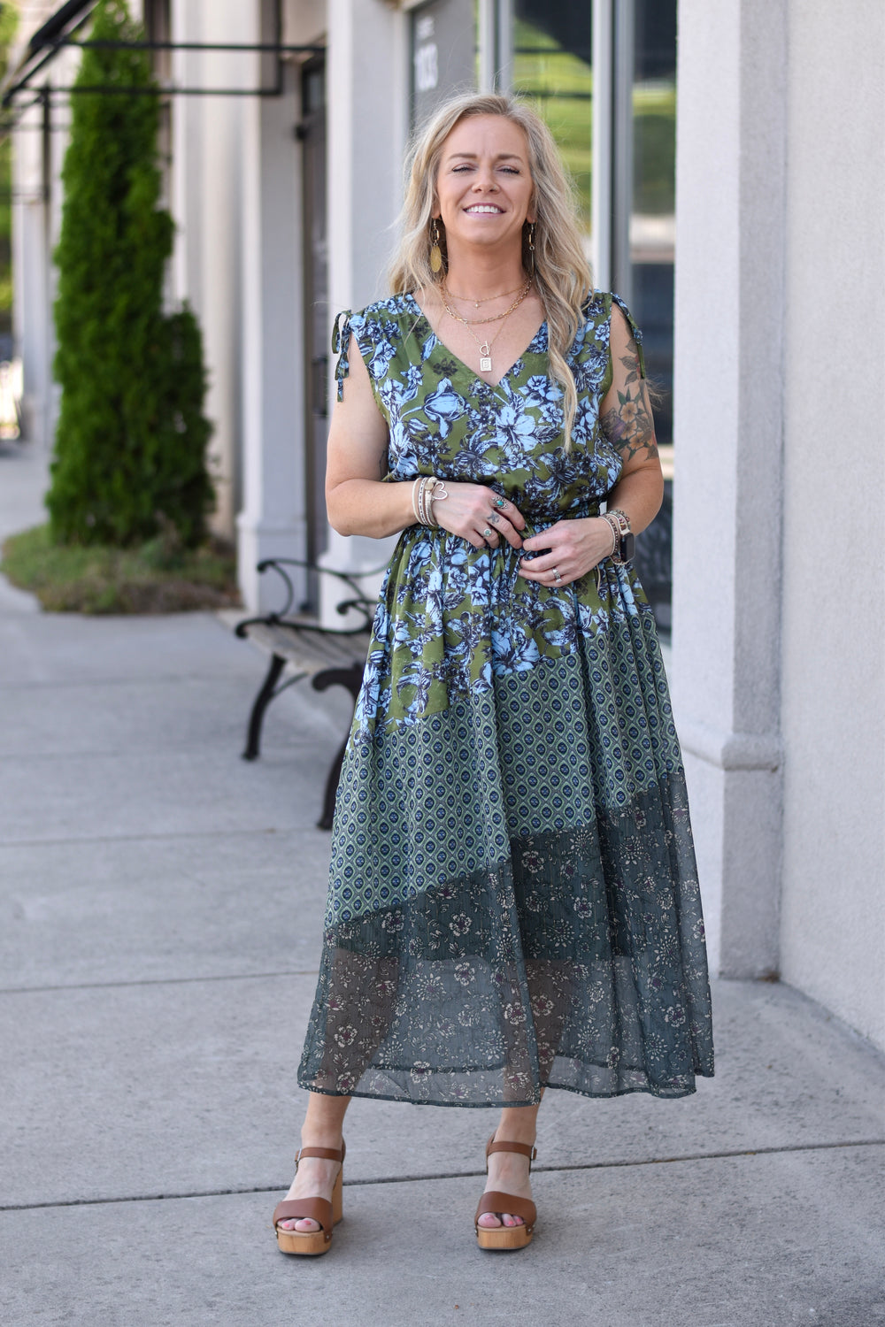 Boho Bloom Mix-Print Maxi Dress
