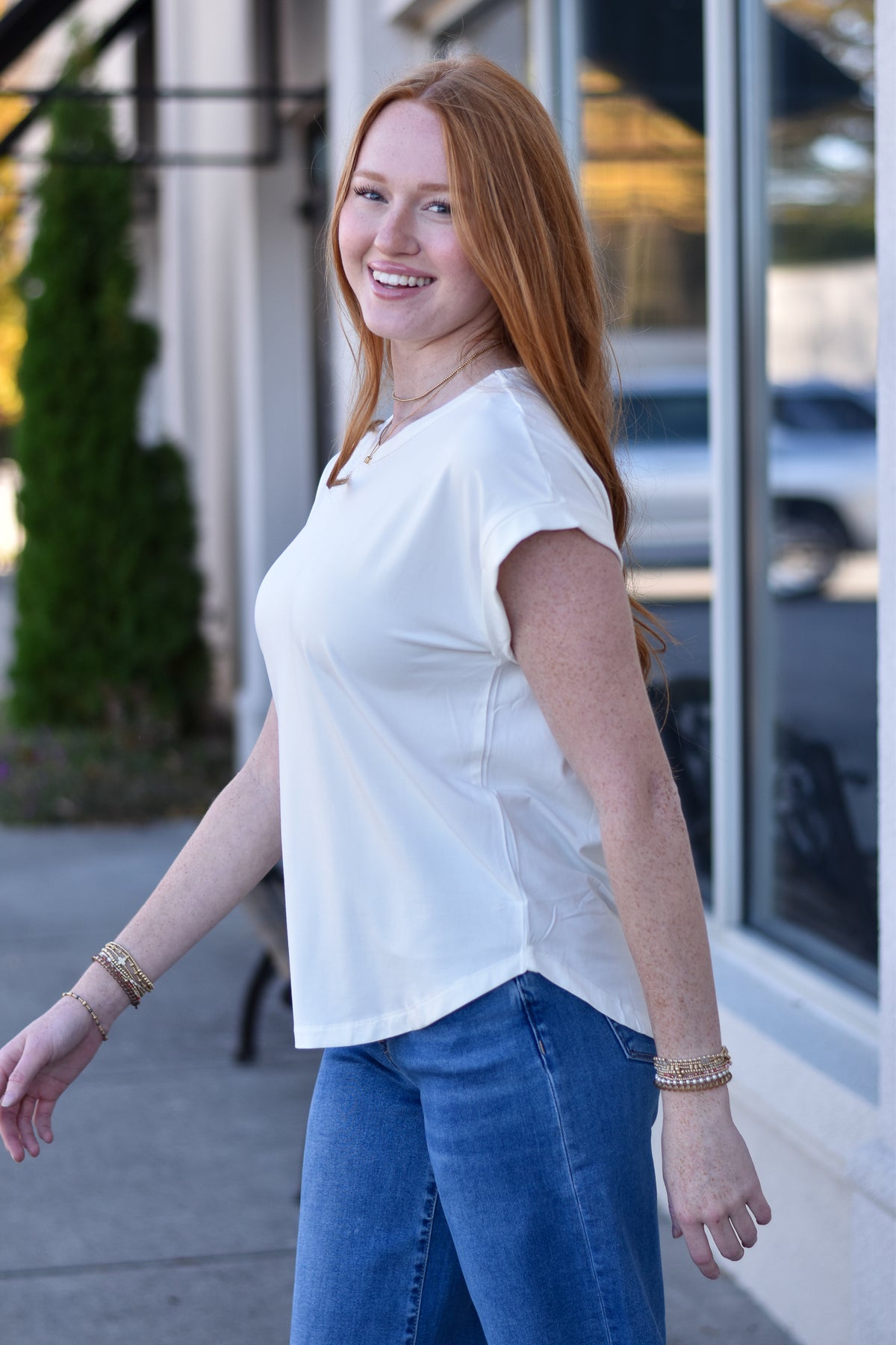 A timeless everyday tee crafted from luxuriously soft bamboo modal. Cool, breathable, and effortlessly flattering—your new favorite foundation piece.