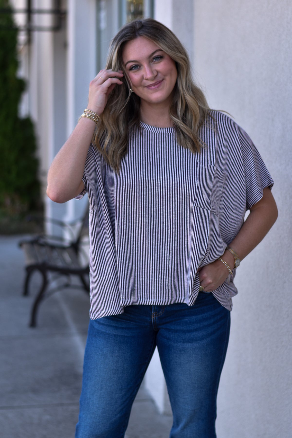 Your new go-to for effortless style and comfort. This oversized corded rib top features a soft drape, relaxed fit, and cute chest pocket — the perfect blend of cozy and casual.