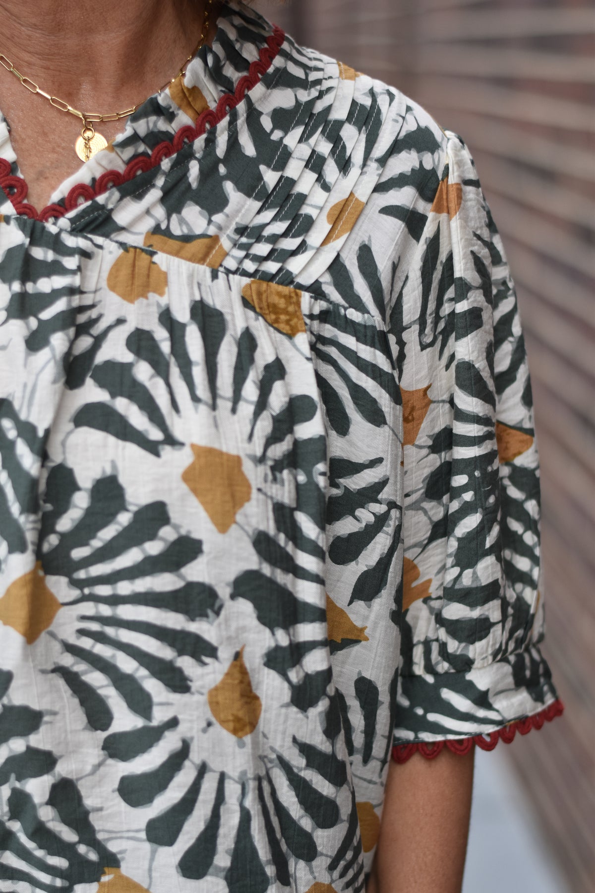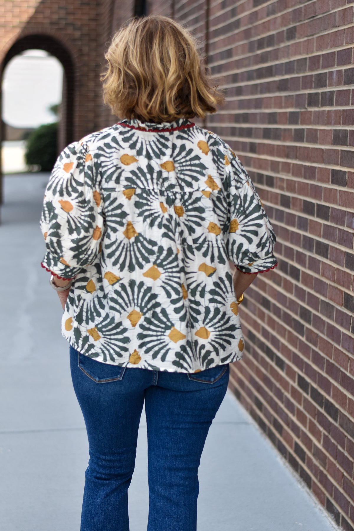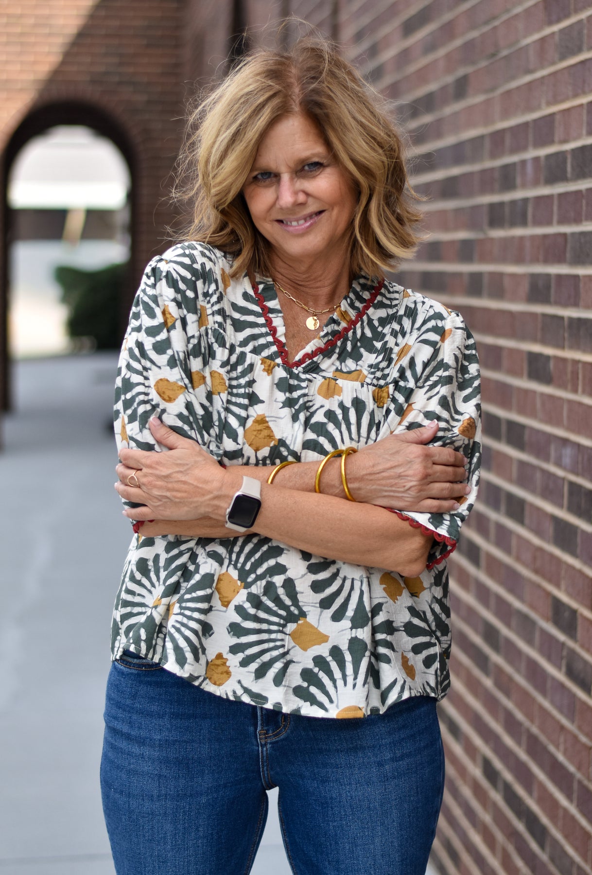 Romantic and boho with a touch of whimsy, the Wildflower Ombré Top by Voy is all about the details. A soft floral ombré print, ruffled neckline, and scalloped trim come together for a feminine finish that stands out effortlessly.