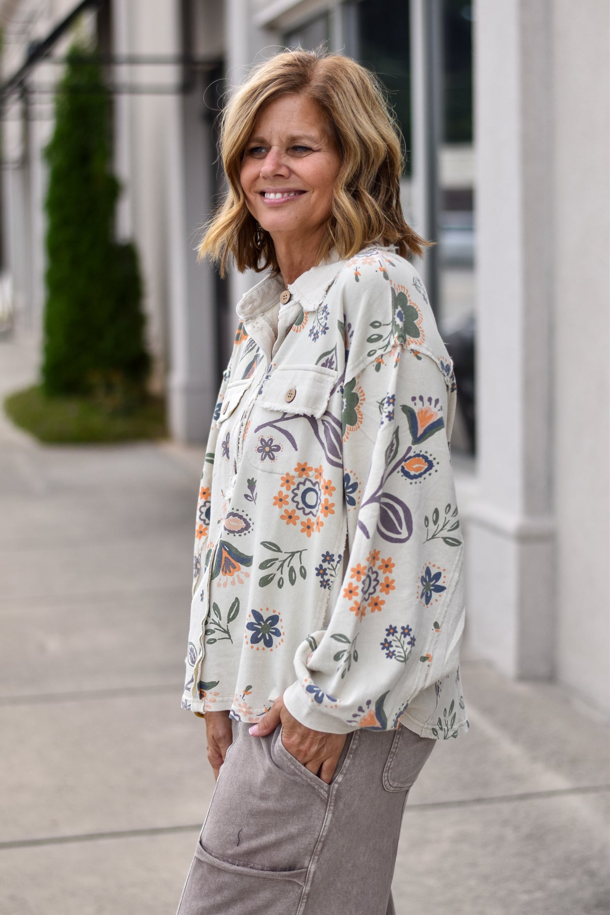 Easy and effortless, this floral mineral-wash pullover brings laid-back boho charm—perfect with all your favorite Easel bottoms.
